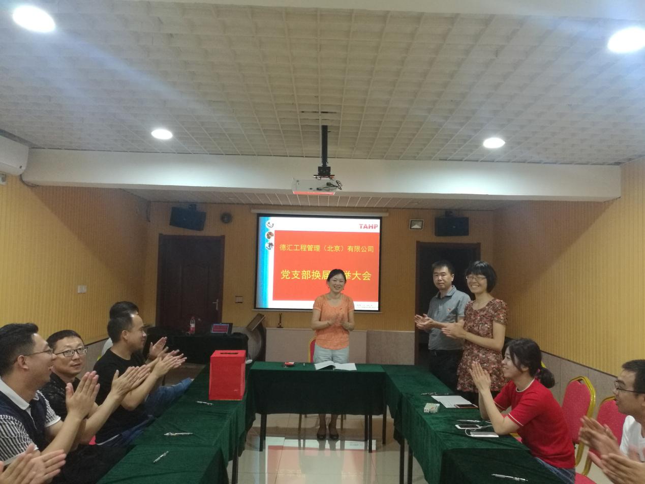 9月15日下午16:00,德汇公司党支部委员会根据2017911日的批复,组织召开党支部大会进行了换届选举。应到党员9名(其中有表决权的正式党员9名),实到8名(其中有表决权的正式党员8名),占党员总数的89%,1人因事缺席。