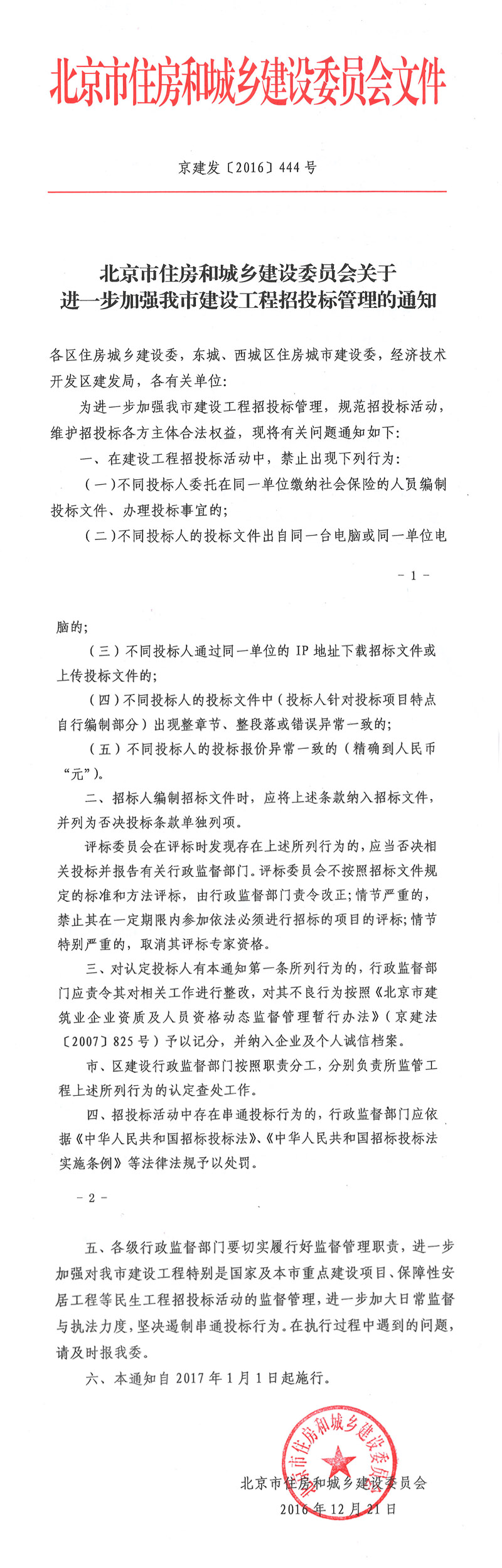 北京市住房和城乡建设委员会关于进一步加强我市建设工程招投标管理的通知
