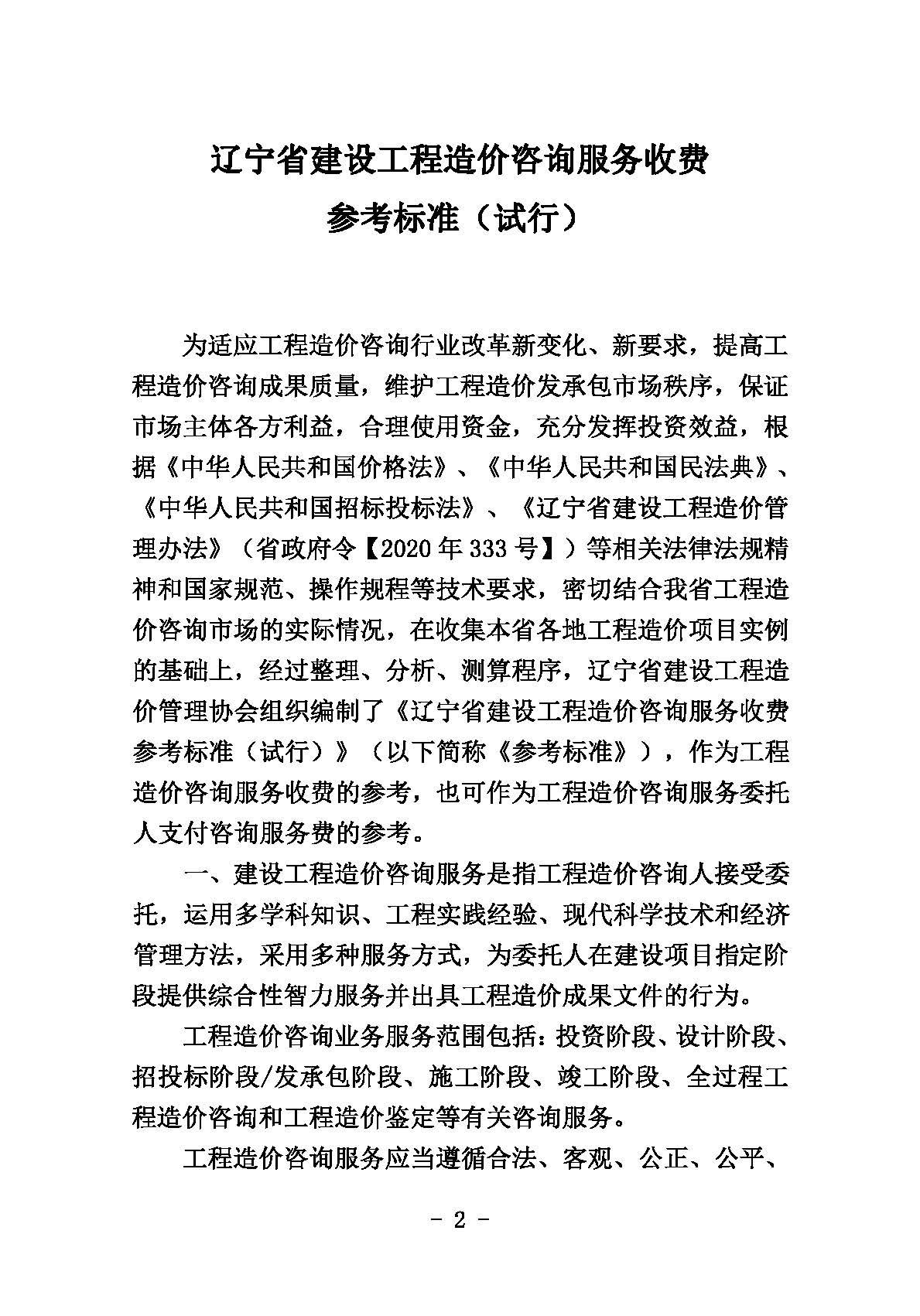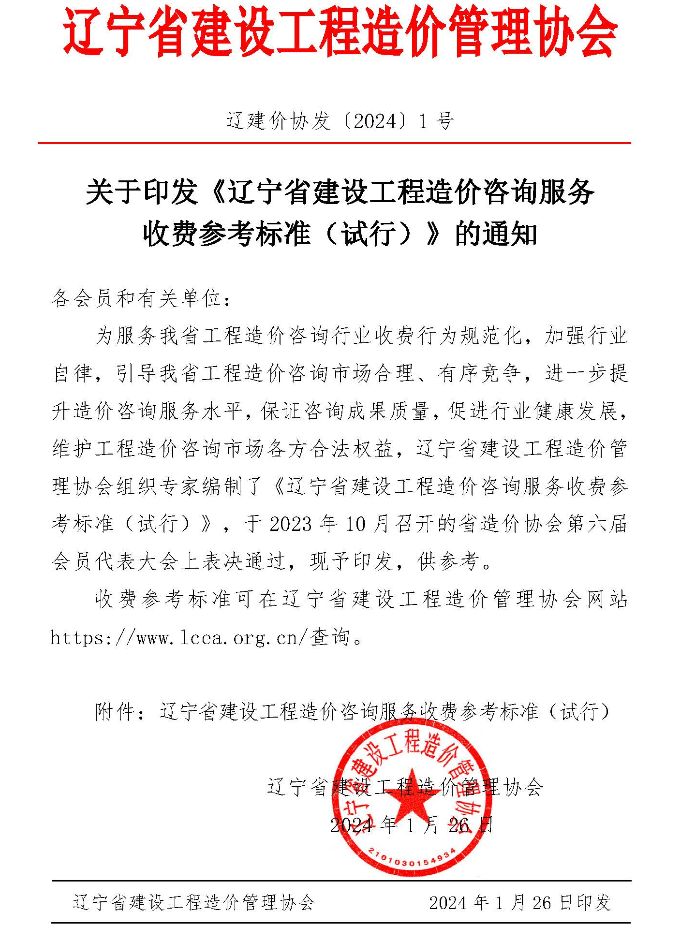 辽宁省建设工程造价管理协会《关于印发<辽宁省建设工程造价咨询服务收费参考标准(试行)>的通知》(辽建价协发(2024)1号)