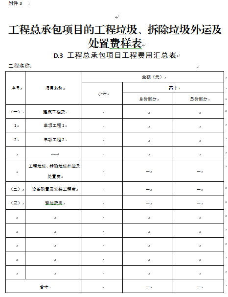 3.工程总承包项目的工程垃圾、拆除垃圾外运及处置费样表