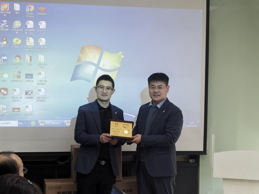 最后在设计师周端介绍徽章释义后,公司组织了二十周年纪念徽章颁发仪式。