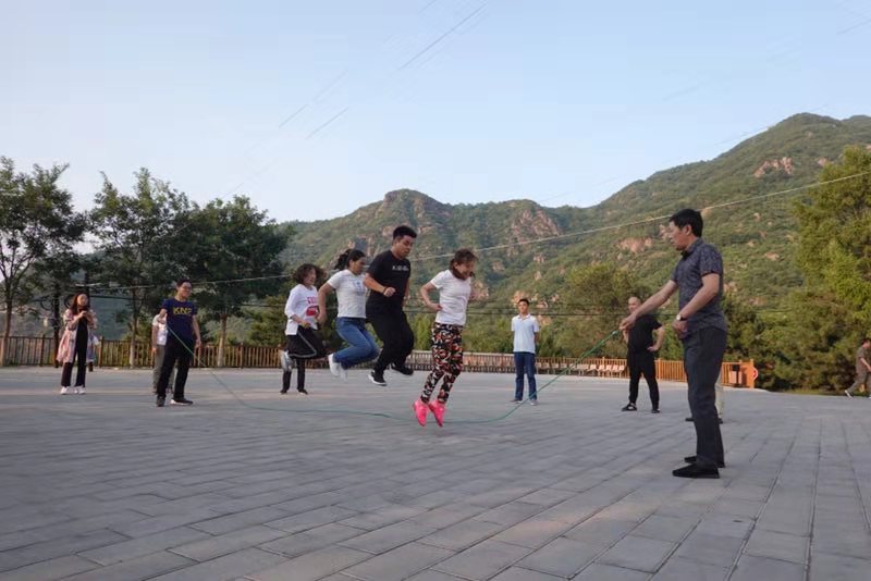 下午五点,我们分三组进行了跳大绳、人字接力、心有灵犀拓展游戏,大家在活动中增进了团结、协调、配合的默契,欢声笑语不断!
