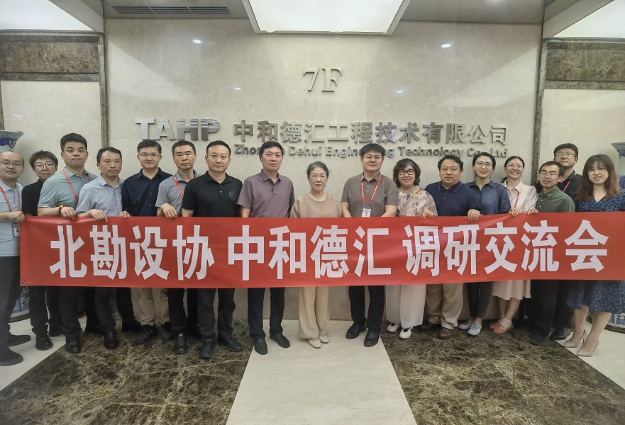 2025 年 6 月 13日,北京工程勘察设计协会秘书长胡颐蘅携副秘书长陈可、党支部书记兼办公室主任徐丽、协会培训中心校长彭惠、信息化工作委员会主任石慧岗、技术经济工作委员会主任蒋夏涛、工程总承包分会秘书长刘斌一行到我公司调研交流。集团总裁、中和德汇公司董事长王总致欢迎词,对胡秘书长一行莅临指导表示热烈欢迎。
